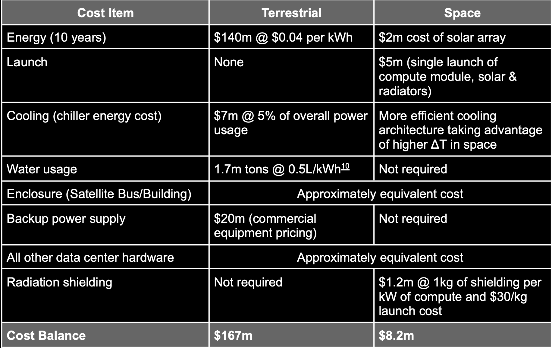 Very high costs of deployment. While SpaceX has significantly changed the math of doing space launches, realistically speaking in the short term, we are unlikely to be able to put any sort of capacity that would be able to return its investment from electricity costs alone.