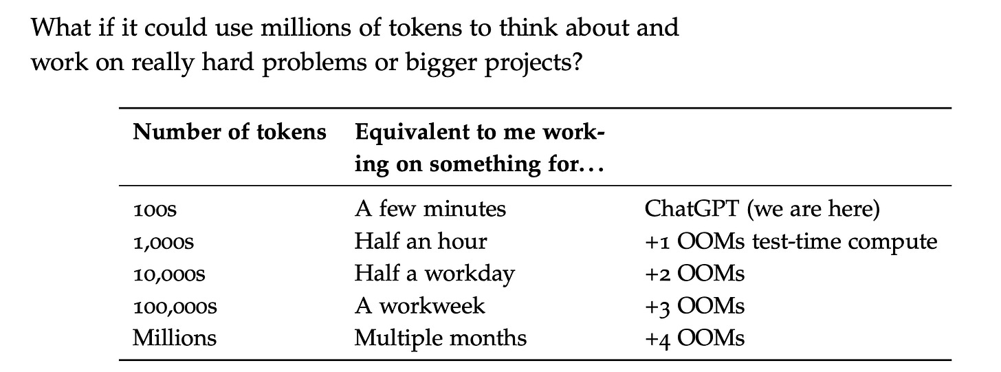 The compelling argument made here is that between the significant investment of compute and constant iteration on the research side, we will be able to scale the existing models several orders of magnitude (OOM) higher. The paper was written prior to o1 (which was the first reasoning model and released in December 2024) and we already hit a new OOM leap to PhD-level intelligence available in our pocket. The logical conclusion of a new OOM leap is that we might supersede PhD-level intelligence and create sufficient level of autonomy. Autonomy means independent AI agent researchers, scaled to billions of them.