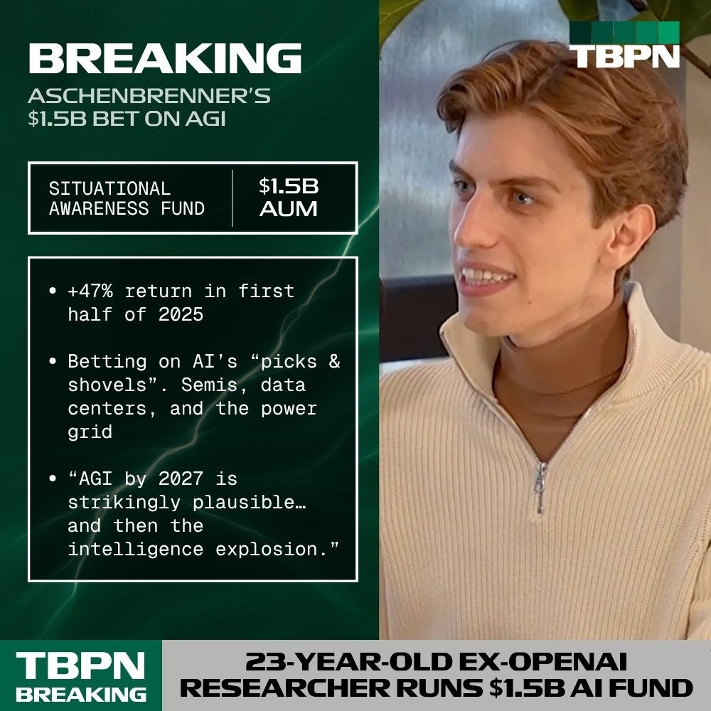 While he ended up getting fired from OpenAI (allegedly because he had flagged poor cybersecurity practices, which his paper addresses quite extensively), shortly after, he ended up leading a new hedge fund that puts his “Situational Awareness“ thesis into actionable investments.