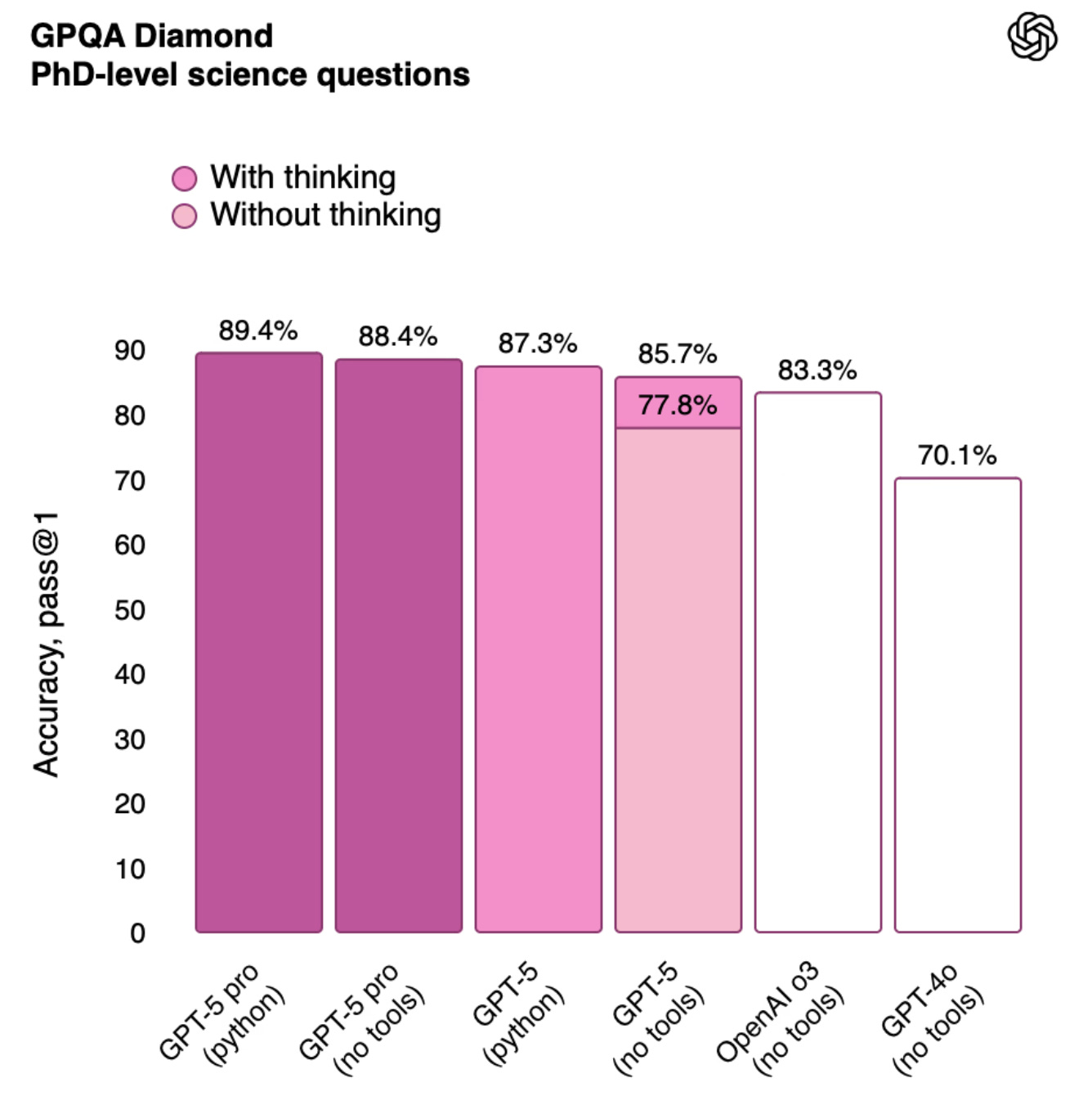 Fourteen months later, every version of GPT-5 is able to score higher than the domain-specific PhD average.