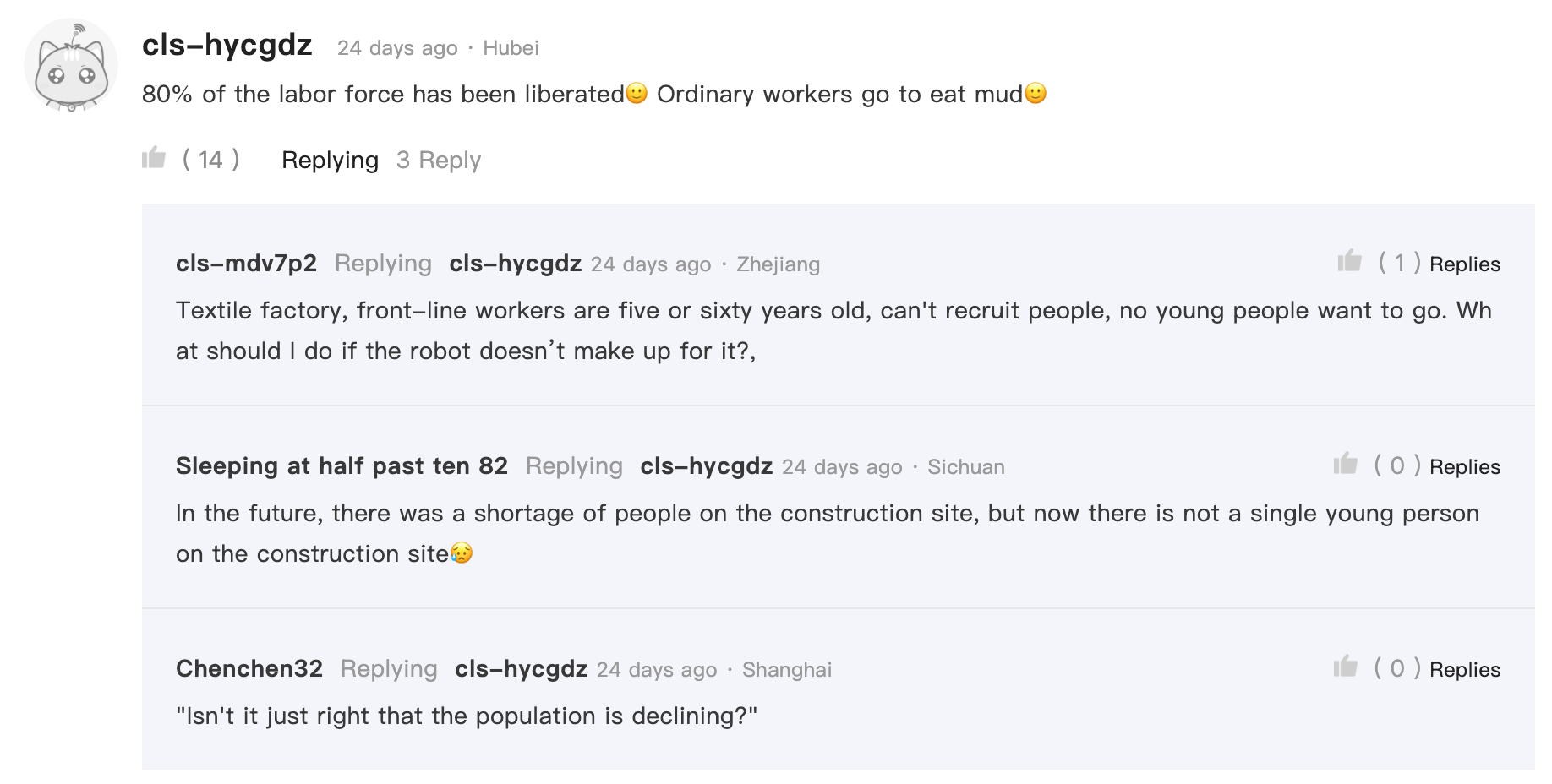 Source: Comments under the cls.cn article on the speech; translated from Chineese.