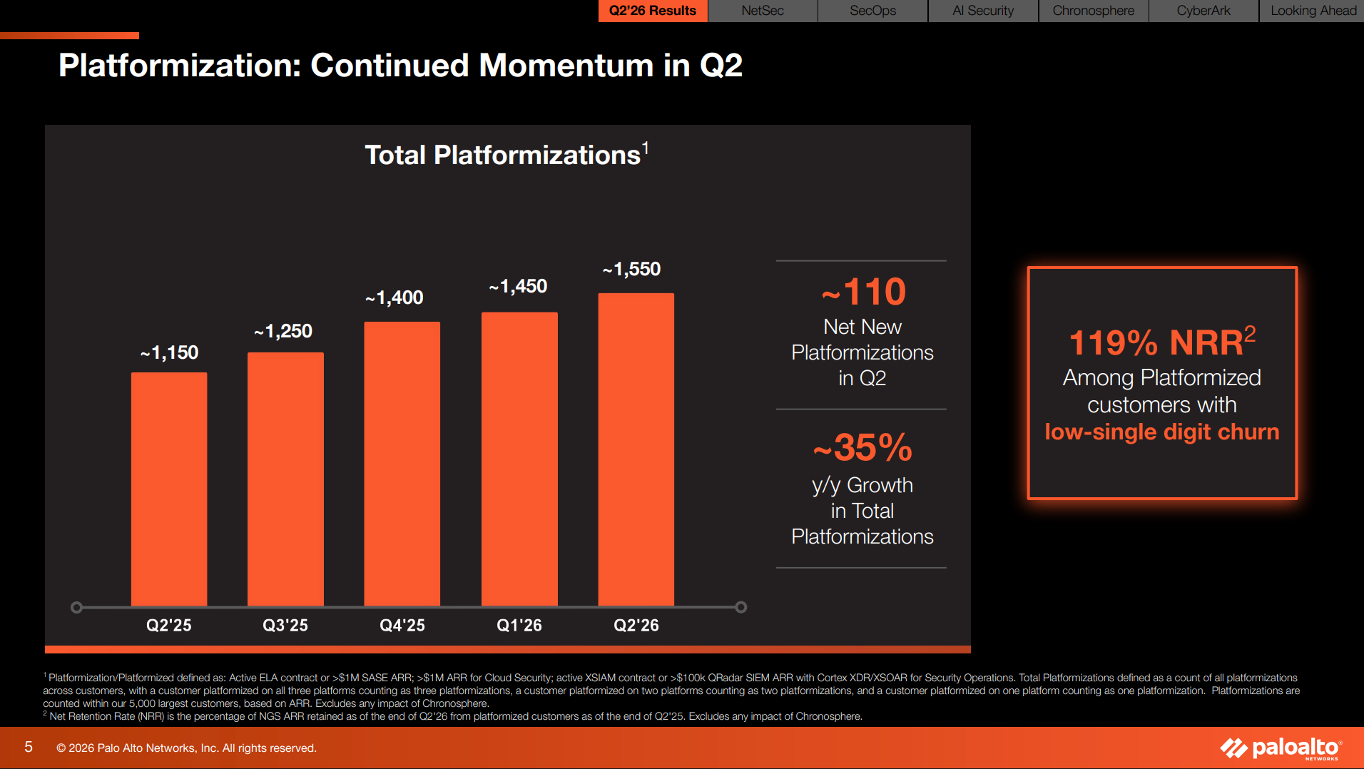 A platformized approach built on a real-time data-driven model that gets smarter with scale is the only way to secure the modern enterprise, and our results continue to prove that out. In Q2, we delivered approximately 110 net new platformizations, a quarterly record outside of our seasonally strong Q4.