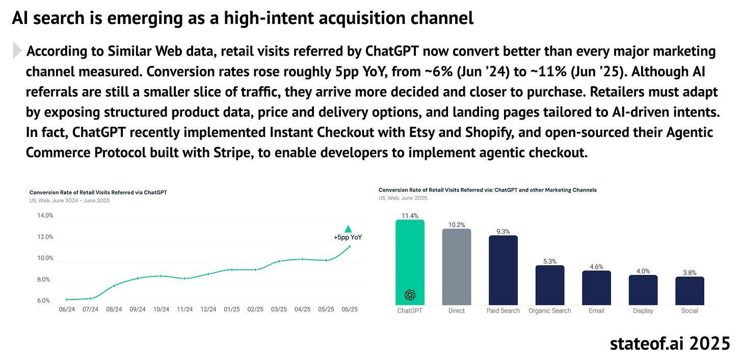 A lot of this inference is driven by the move from regular search towards AI search within relevant applications. The different frontier labs have offered a variety of tools to do regular searches (including agentic/computer use behavior), while companies like Perplexity have been able to establish themselves as a viable option for early adopters willing to pay for specialized software. This is probably the most underreported trend in the industry today, as retailers have built their storefronts around humans exploring and shopping. “Entity” visits or even just API access is a completely different experience to optimize for and much more difficult to be competitive at. It’s not surprising that OpenAI recently launched applications with ChatGPT itself, giving companies the option to still have some control over the customer experience.