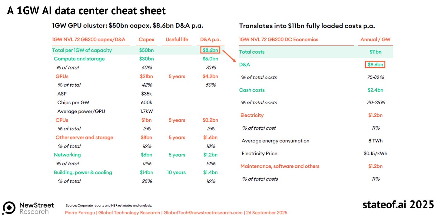 Every 1GW of build-out costs a lot. $50B in capex covers approximately five years of useful utilization, assuming no outside interference with the cluster (such as crippling cyberattacks or physical sabotage).