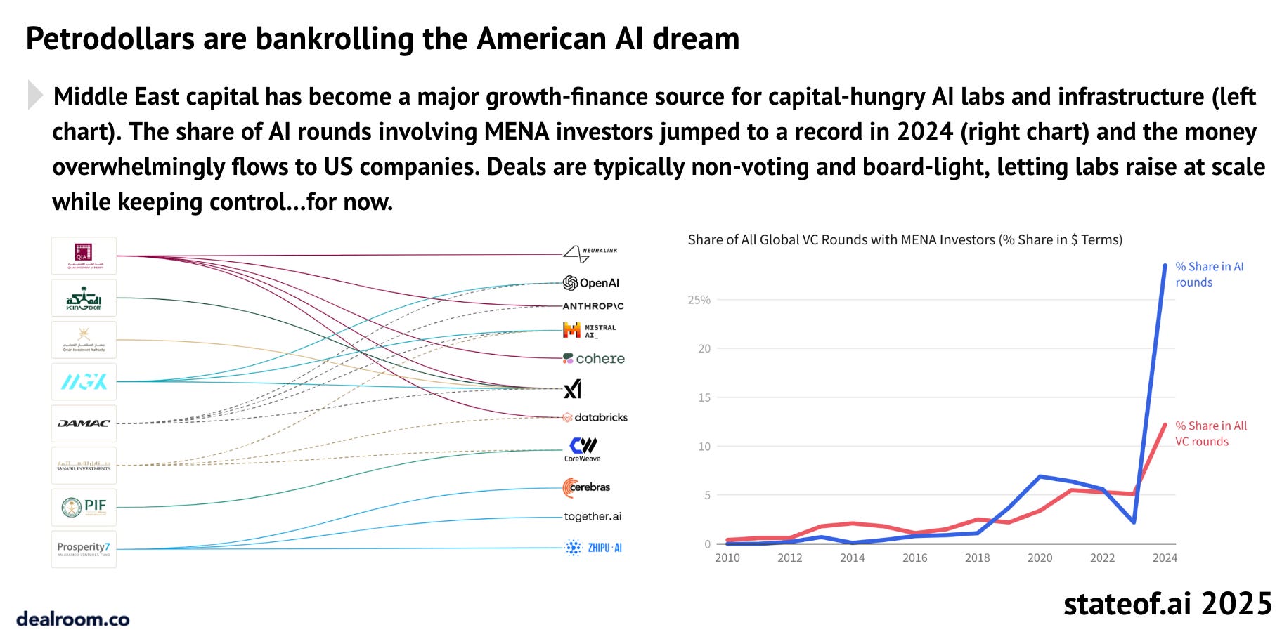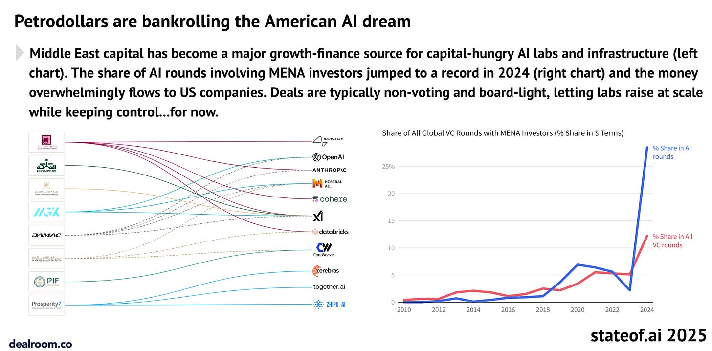 Interestingly enough, the funding for this is not actually coming only from existing revenues and the public. More than 25% of the investment in AI cloud infrastructure came from Middle Eastern players.