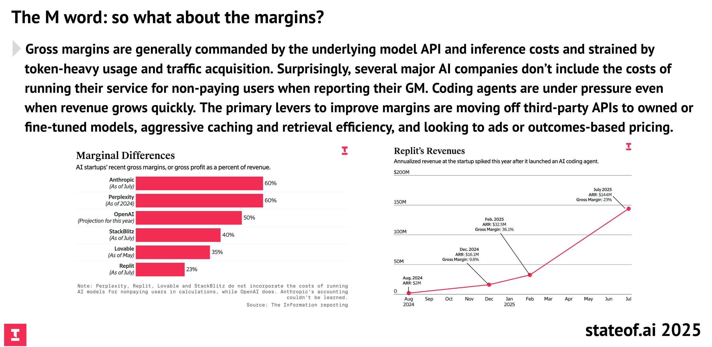 So then the margins argument makes a lot more sense for the new businesses that are building on top of the frontier labs’ APIs. Here the conversation gets more nuanced since the whole history of SaaS is arguably somebody building wrappers around core infrastructure (such as AWS). The viability of the AI-first companies will depend on their capability of offering a differentiated product, and it’s not surprising that many are not finding this PMF yet. This is also an opportunity for existing incumbents to play into this area and benefit from other network effects, as we’ve seen with SAP and their focus on building AI applications on top of the essentially unexportable data.
